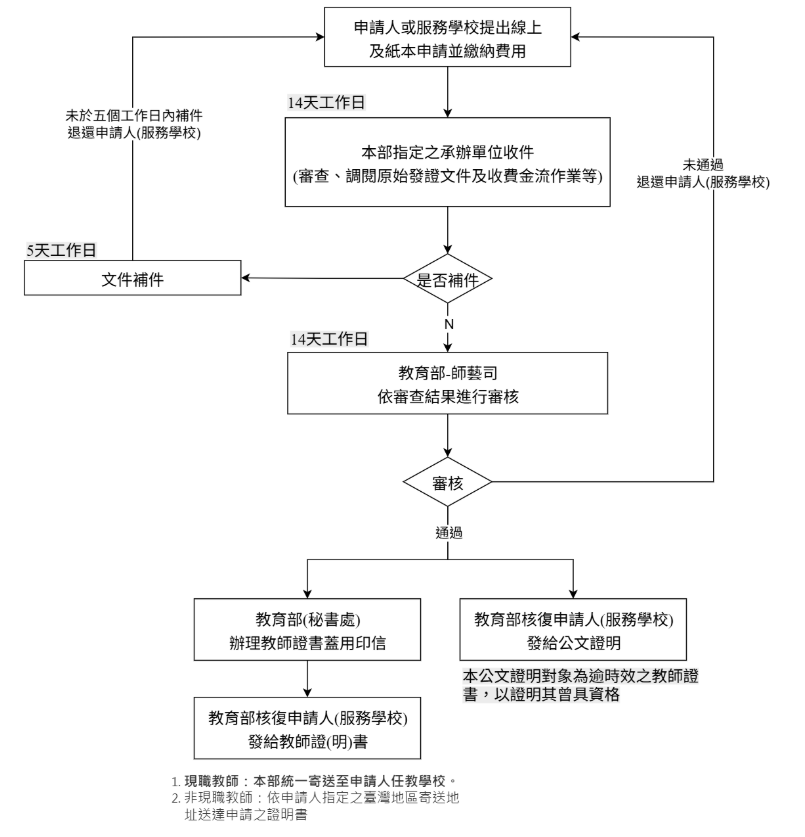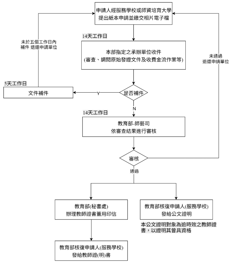 高級中等以下學校及幼兒園教師證書補發、換發流程圖